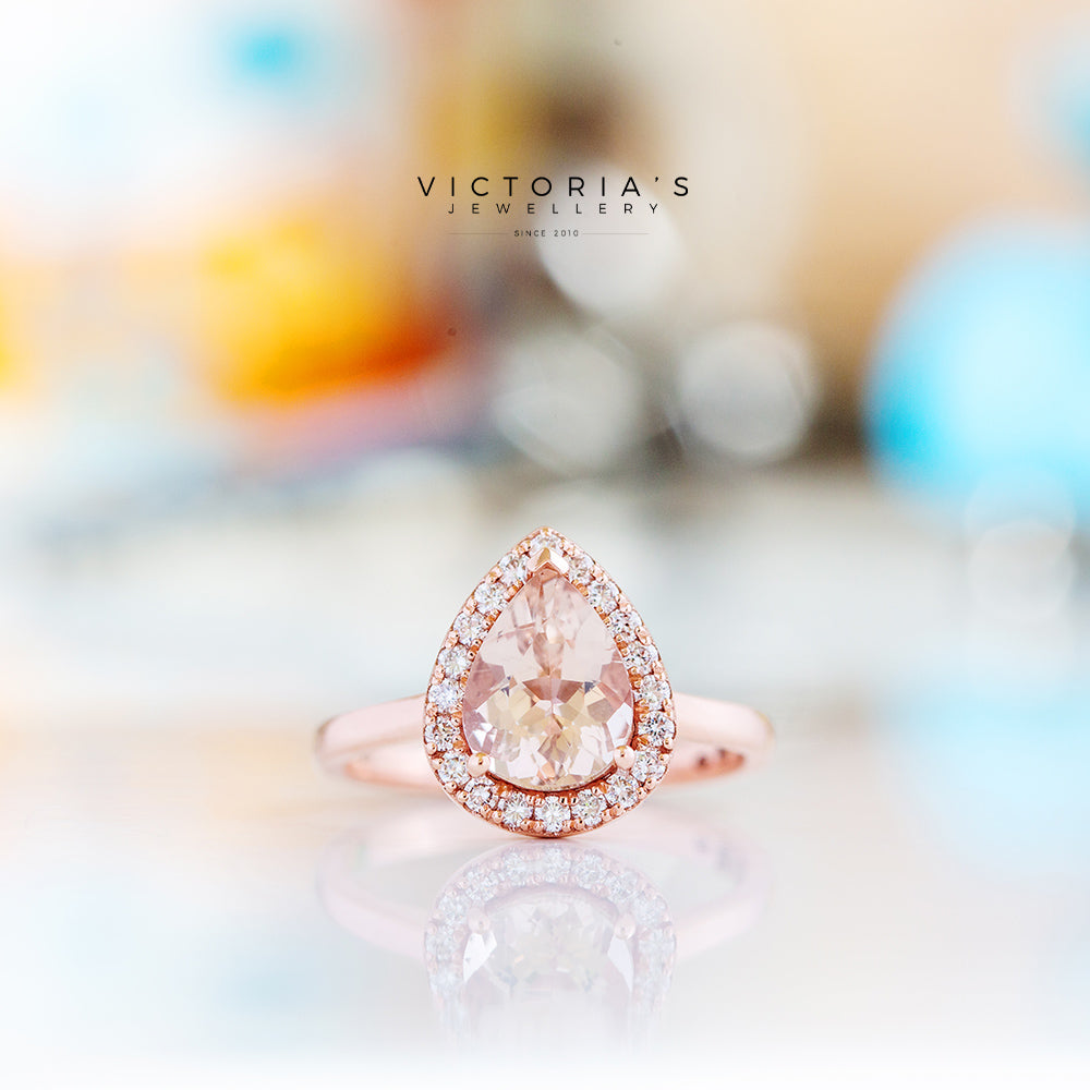 Grace, a Pear cut Lab Diamond Halo Engagement Ring - 1.5ct