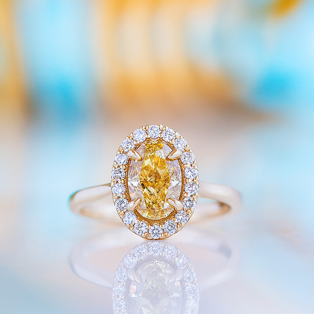 Tilana, an Oval cut Yellow Diamond Halo Engagement Ring - 1.5ct