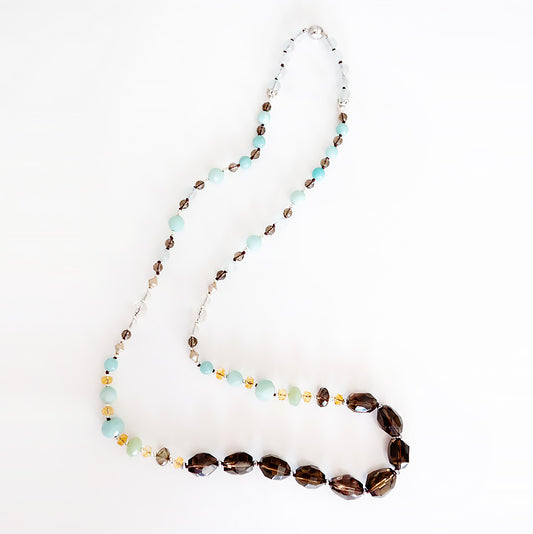 Smoky Quartz, Amazonite, Citrine and Rock Crystal Necklace - 90cm