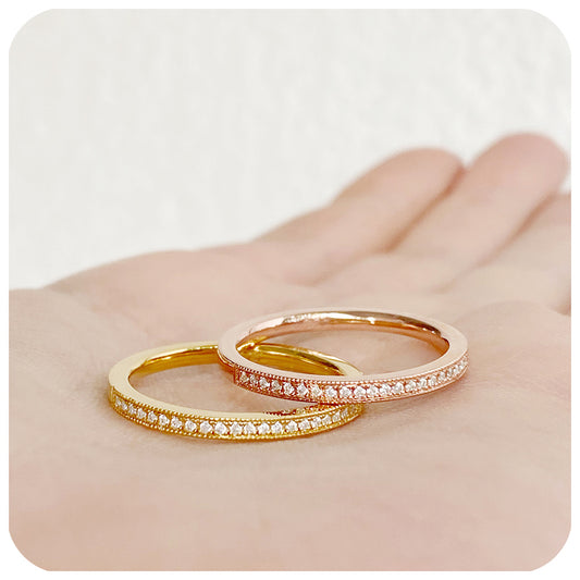 Aurora, a Mined Diamond Half Eternity Stack Ring