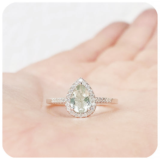 Grace, a Pear cut Lab Diamond Halo Engagement Ring - 1.5ct