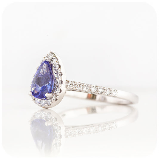 The Filigree, Pear cut Tanzanite and Diamond Ring