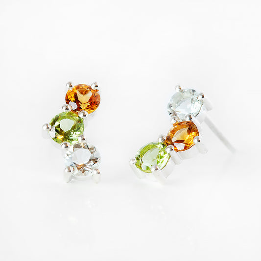 Laurel, a Citrine, Peridot and Prasiolite Rainbow Stud Earring