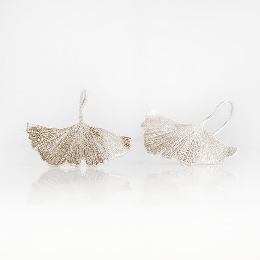 Hand made Ginkgo Biloba Leaf Earring Made in Sterling Silver