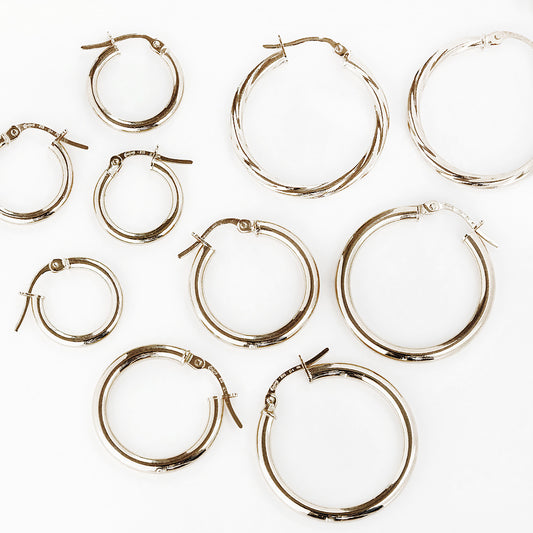 White Gold Hoop Earring - 20mm