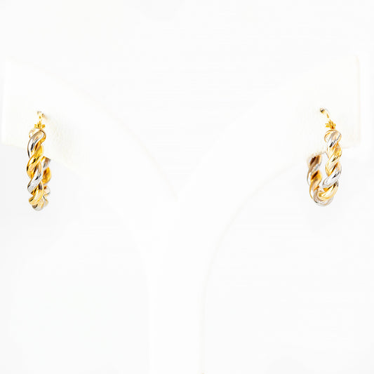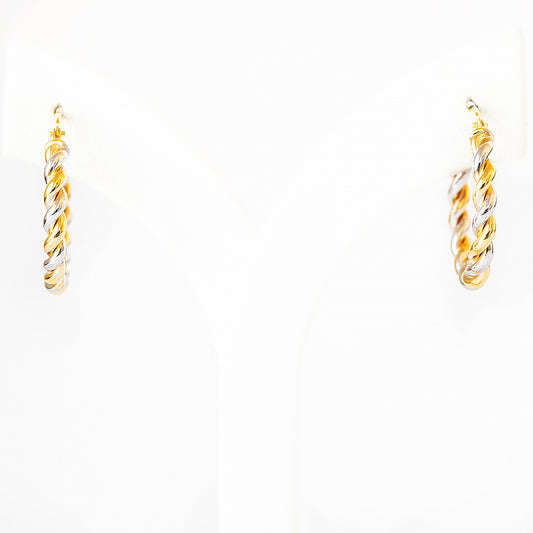 9k Yellow and White Gold Twisted Hoops - 15mm