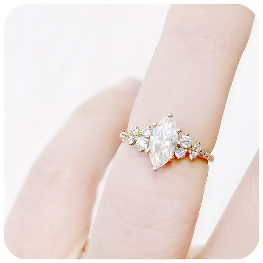 Lucia, a Marquise cut Lab Diamond Engagement Ring