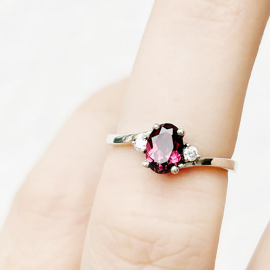 Georgie, a Rhodolite Garnet and Diamond Trilogy Ring
