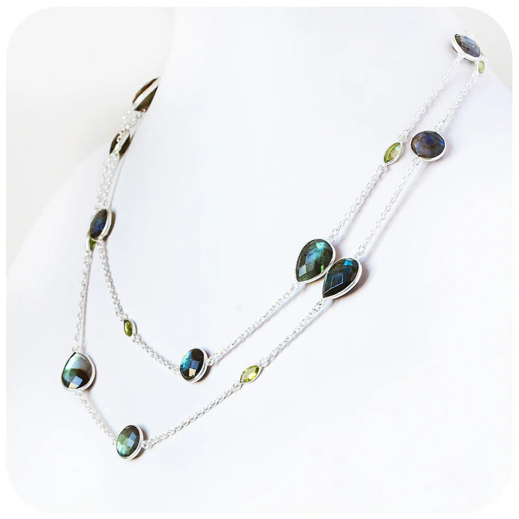 Rainbow Labradorite and Hematite Bead Necklace - 45cm