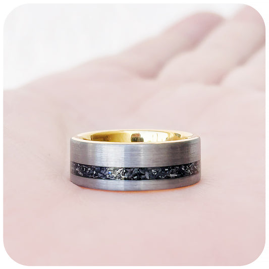 Erik, a Meteorite and Brushed Tungsten Mens Wedding Ring - 8mm