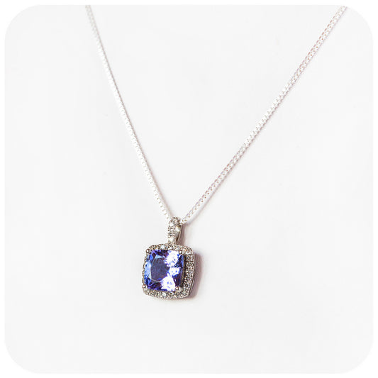 Eva, a Blue Sapphire and Diamond Halo Ring