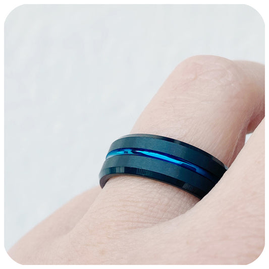 Hudson, The Black and Blue Men's Tungsten Ring - 8mm