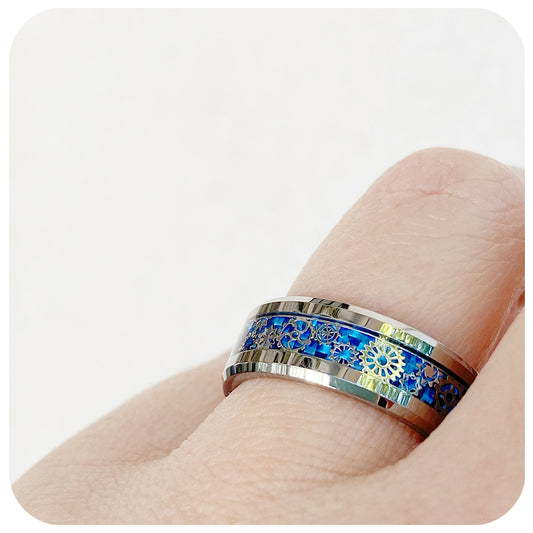 Watson, The Blue Watch Mechanism Inlay Tungsten Ring - 8mm