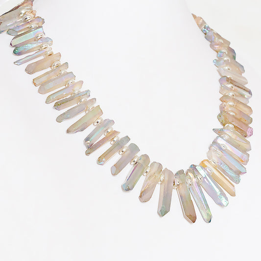 Bright Red Coral, Crystal and Fresh Water Pearl Necklace