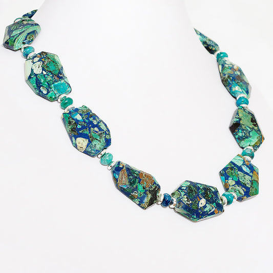 Slabs of Chrysocolla with Jasper and Hematite Necklace