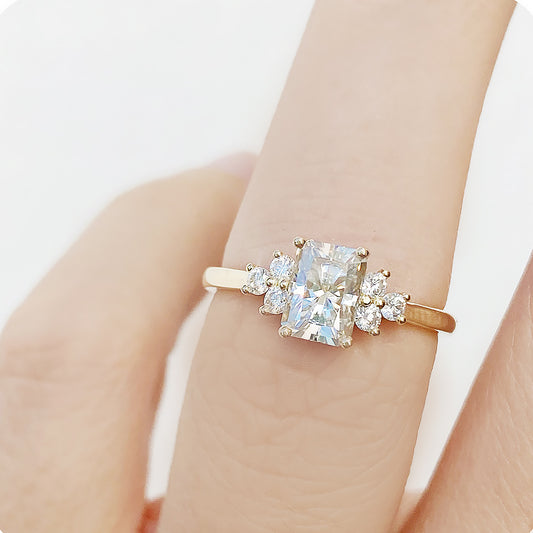 Este, a Radiant cut Moissanite Engagement Ring