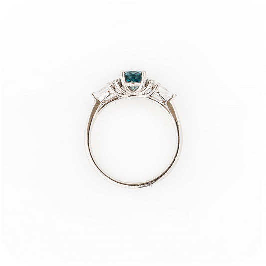 Ariana Mini, a London Blue Topaz and Moissanite Trellis Ring
