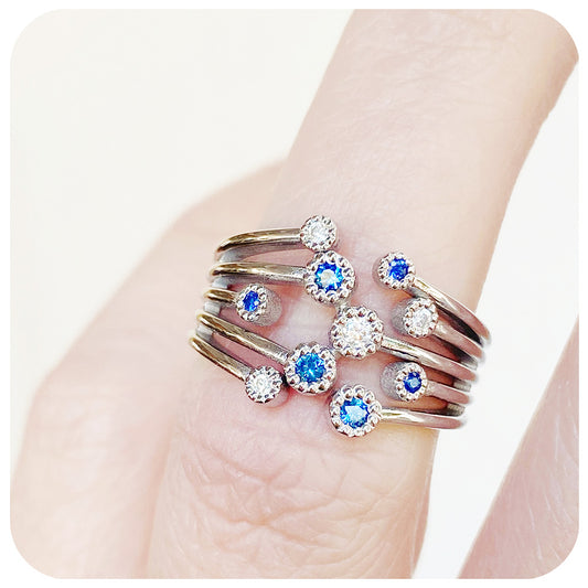 The Moissanite and Blue Sapphire Shooting Star Ring - The September Birthstone Edition