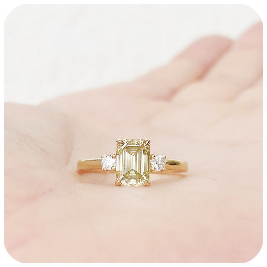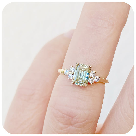 Zandri, an Emerald cut Topaz and Moissanite Ring