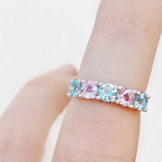 Annie, a Pastel Aquamarine and Morganite Half Eternity Ring