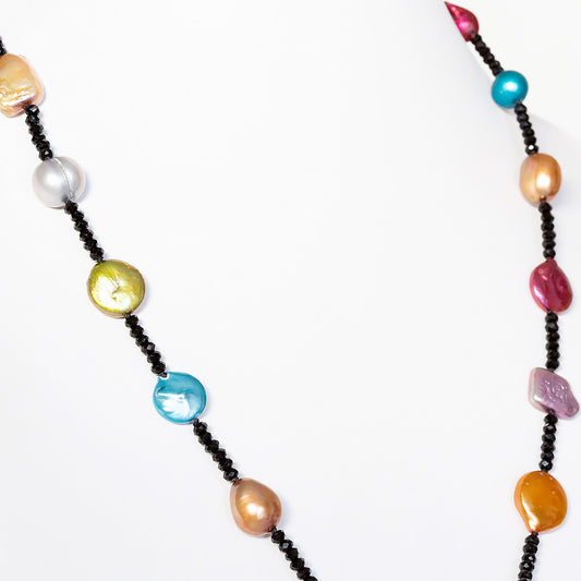 Multi Colour Fresh Water Pearl and Onyx Necklace - 62cm