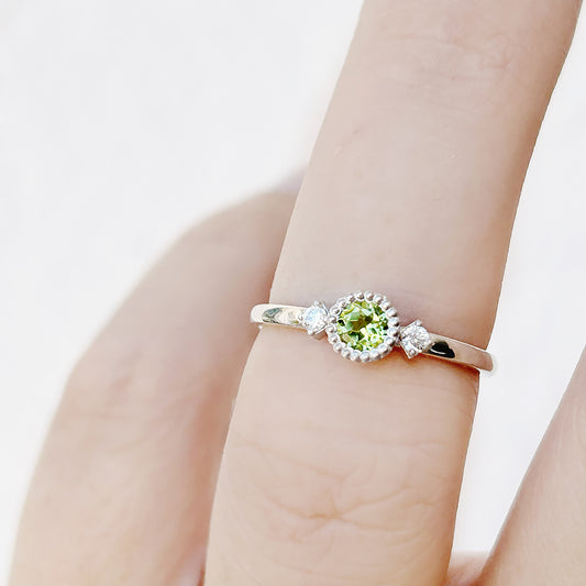 Lucy, a Peridot and Prasiolite Trilogy Ring