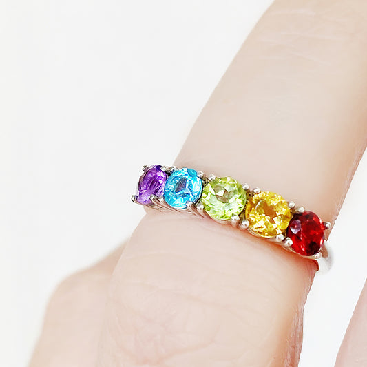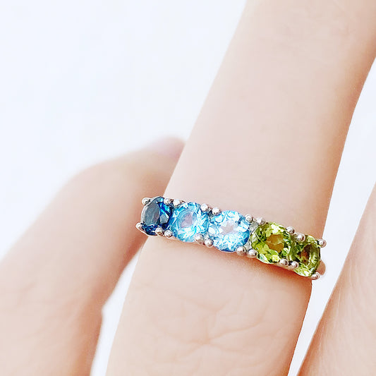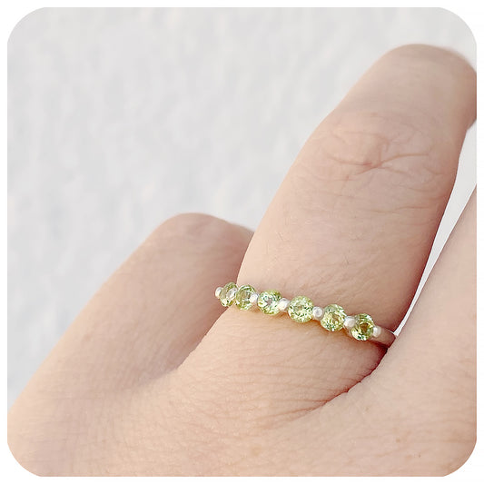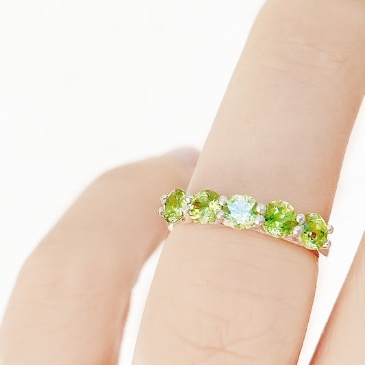 Ellie, a Peridot Six Stone Half Eternity Ring