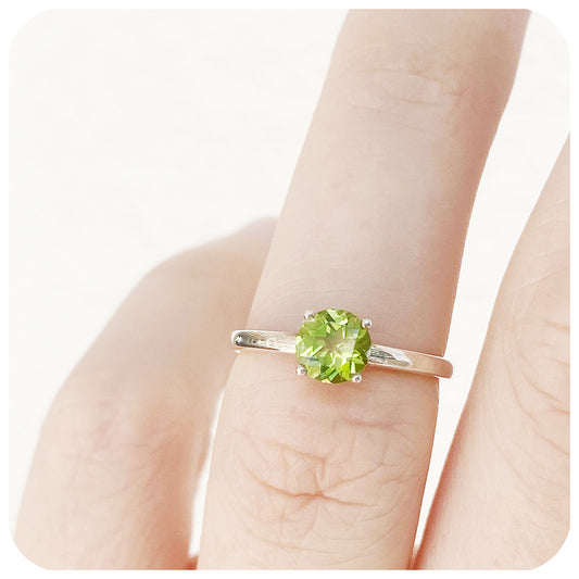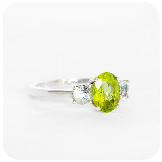 Lucy, a Peridot and Prasiolite Trilogy Ring