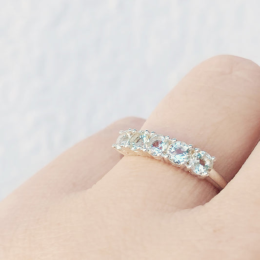 Hallie, a Prasiolite and Topaz Trilogy Ring