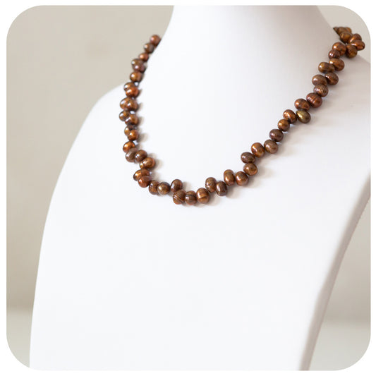 Brown Potato Fresh Water Pearl Necklace - 9-10mm