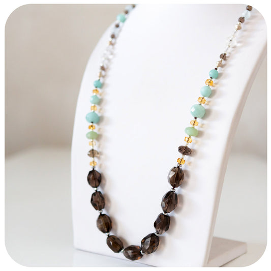 Smoky Quartz, Amazonite, Citrine and Rock Crystal Necklace - 90cm