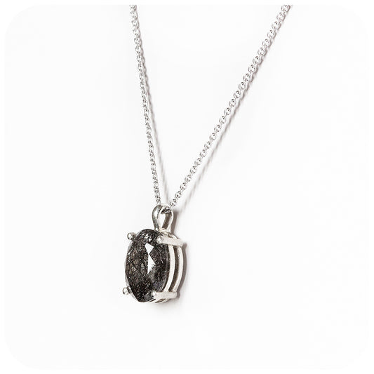 Lana, an Oval cut Black Rutile Quartz Pendant and Chain