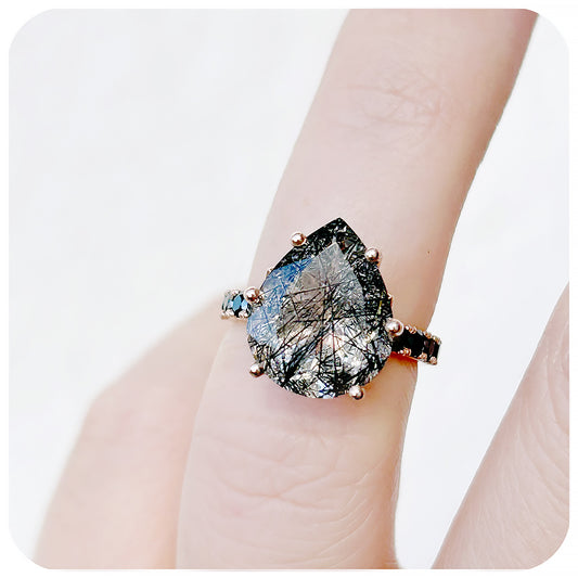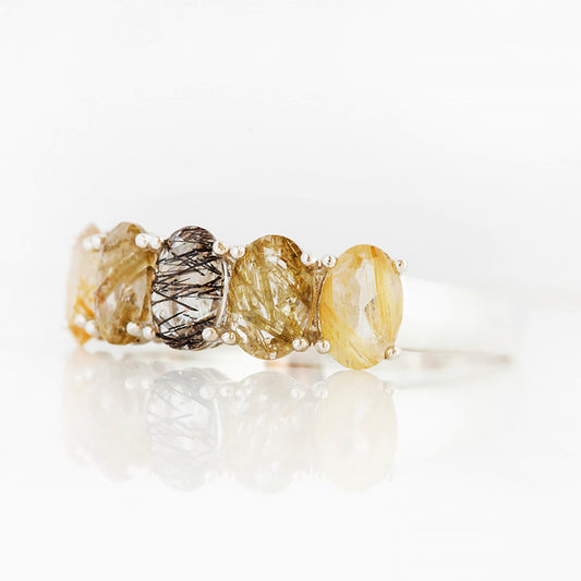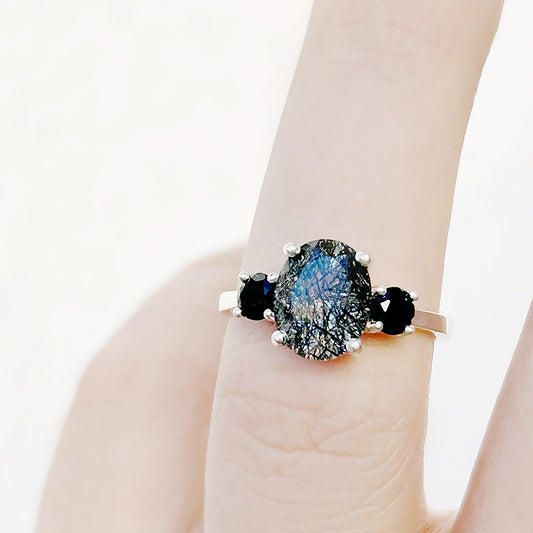RenΓ©, a Rutile Quartz and Black Spinel Ring