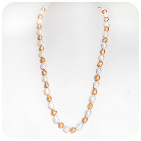White and Gold Fresh Water Pearl Necklace - 75cm