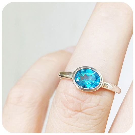 Quinn, an Oval cut Swiss Blue Topaz Stack Ring