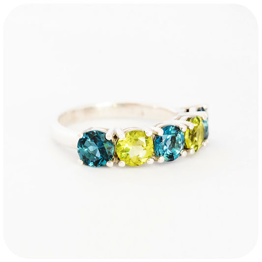 London Blue Topaz and Peridot Half Eternity Ring in Sterling Silver - 5.5mm