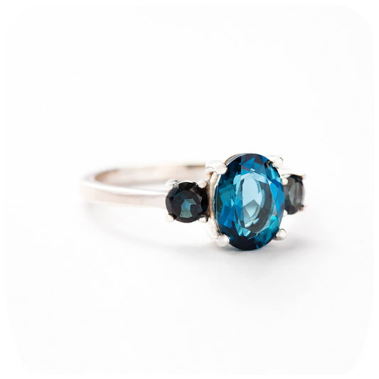 Hallie, a London Blue Topaz Oval Trilogy Ring