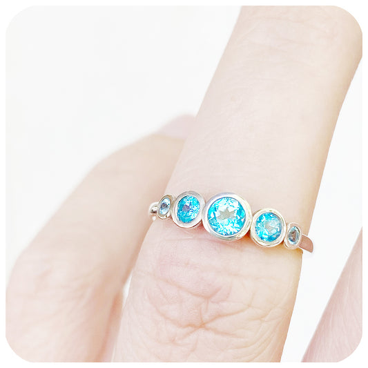 Gabriella, a Swiss Blue Topaz Half Eternity Ring