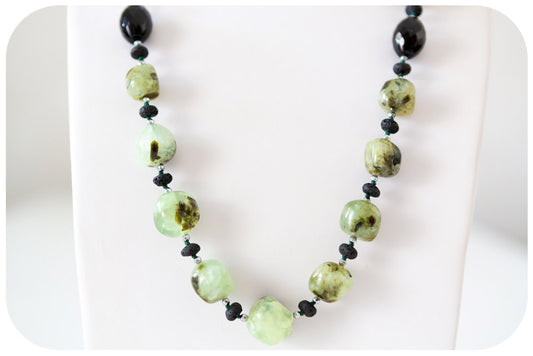 Prehnite, Onyx, Volcanic Rock and Hematite Detail Necklace - 70cm