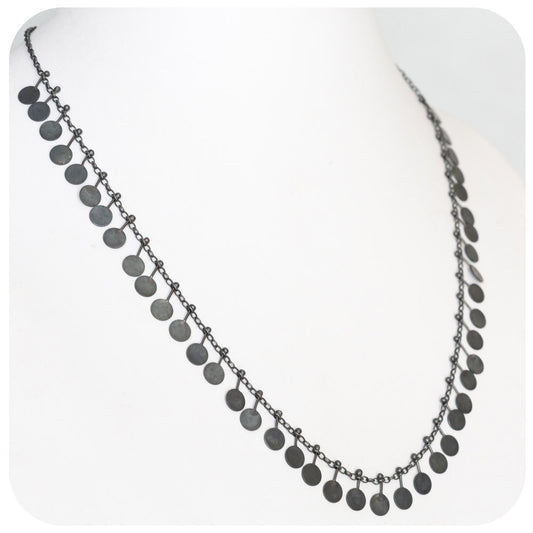 Sterling Silver Dangling Disc Necklace finished with Black Rhodium