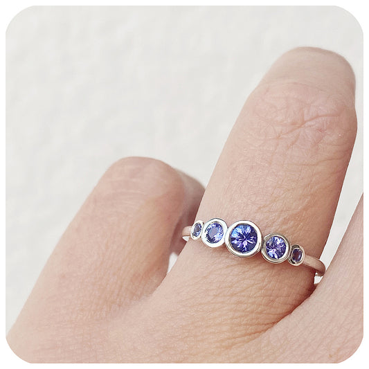 Gabriella, a 5 Stone Tanzanite Half Eternity Ring