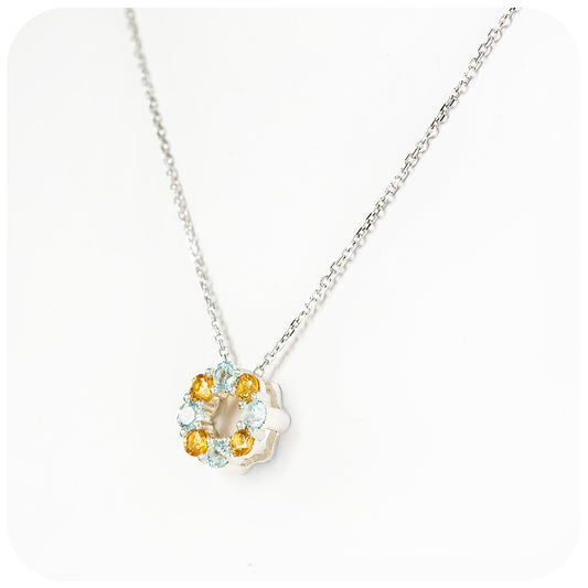 Circle of Life Necklace - Citrine and Sky Blue Topaz