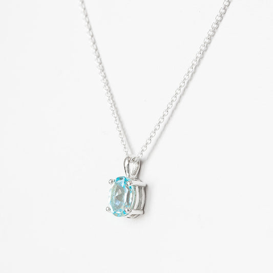Luna, an Oval cut Sky Blue Topaz Necklace - 8x6mm