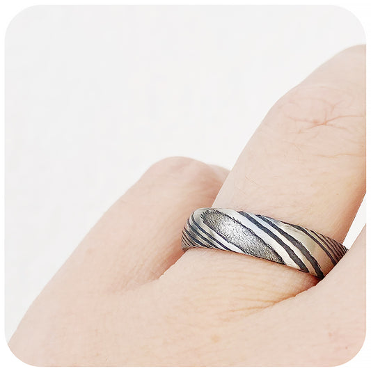 Tyler, a Silver Damascus Men's Wedding Ring - 6mm