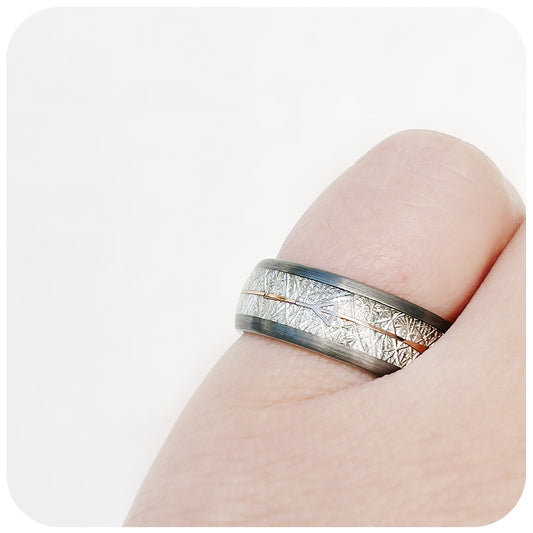 The Arrow, Meteorite Tungsten Mens Ring - 8mm