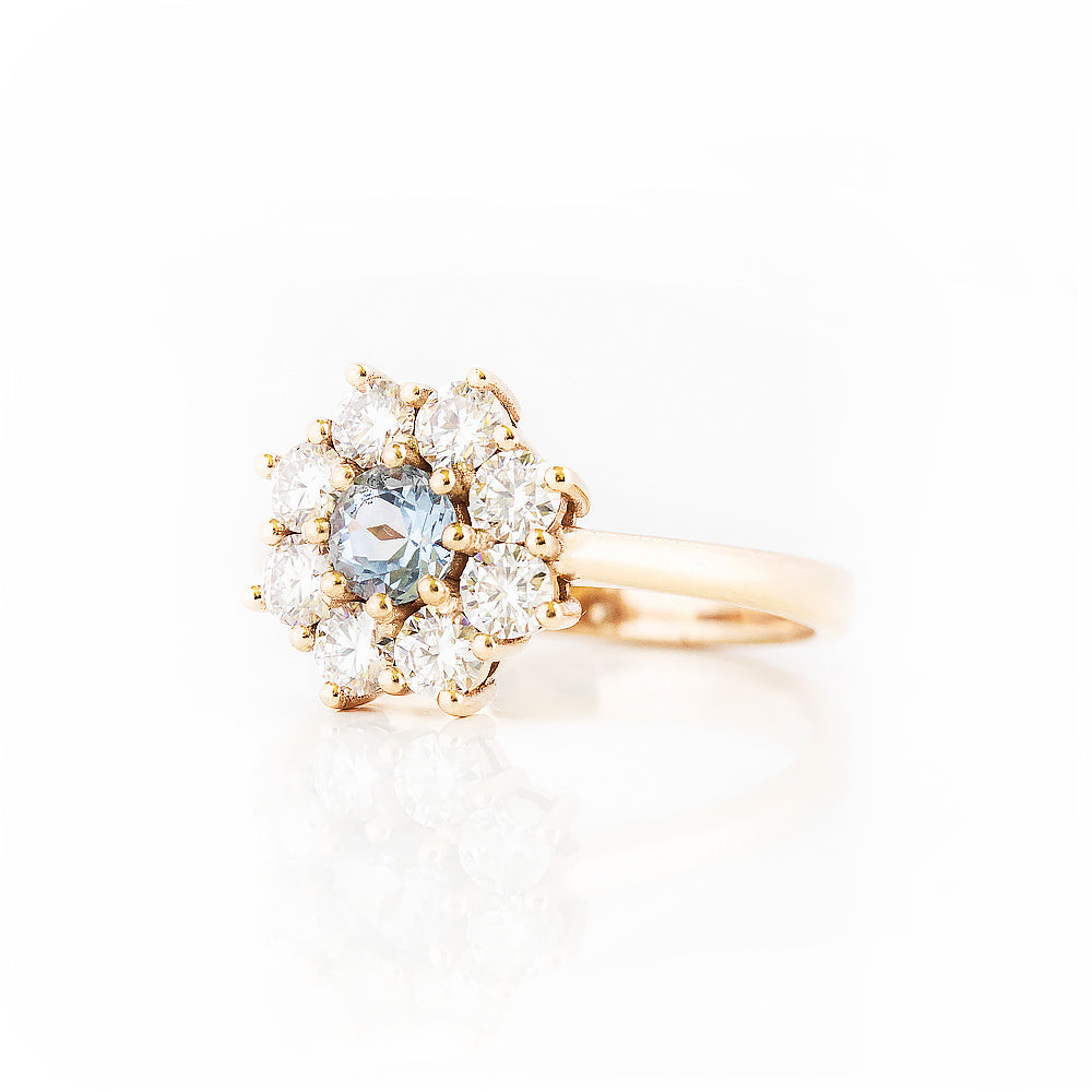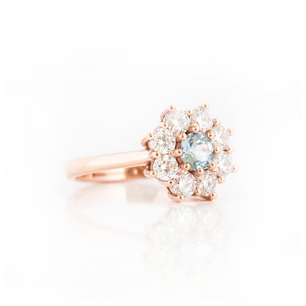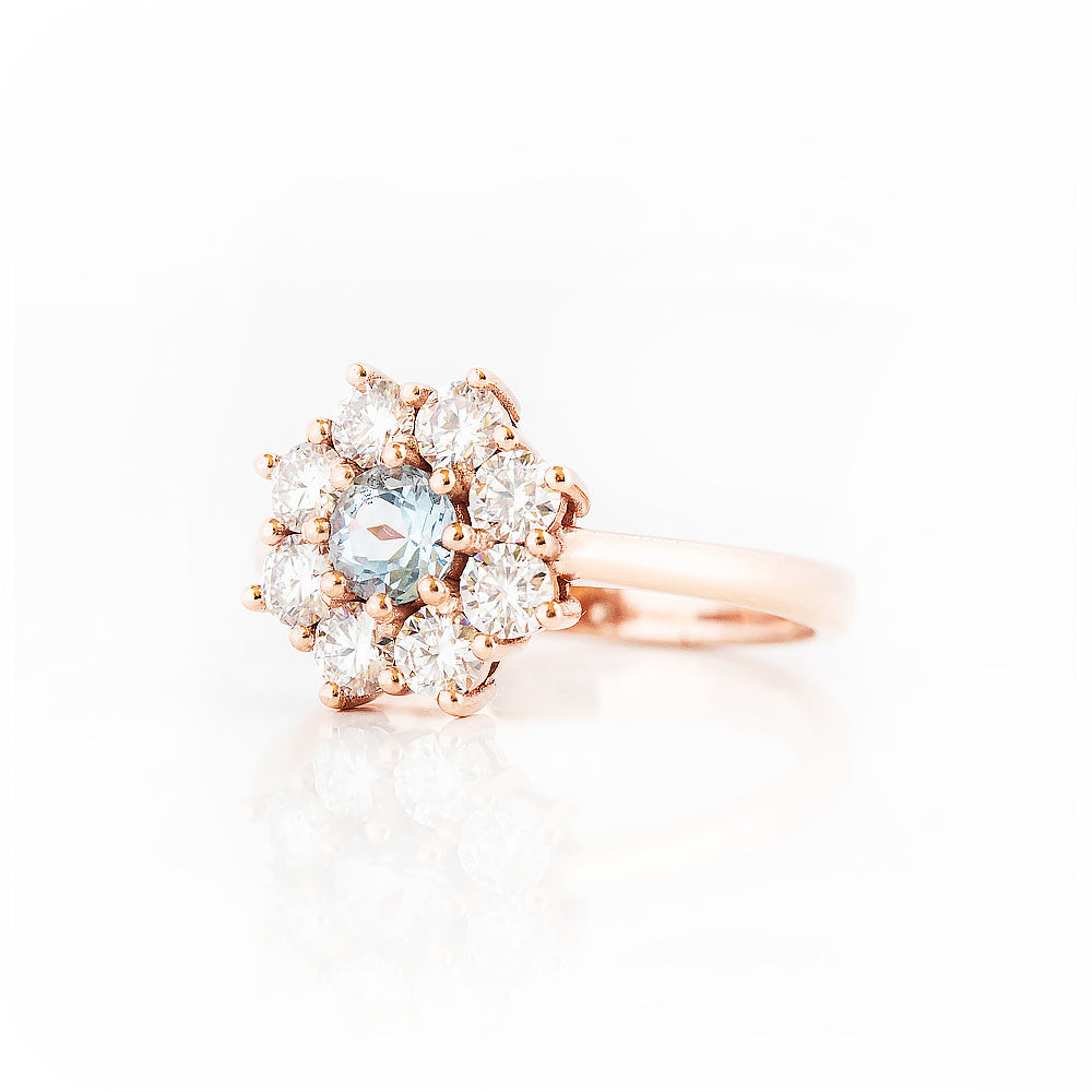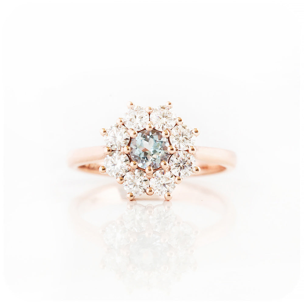 Fleur, a Moissanite and Topaz Flower Cluster Ring