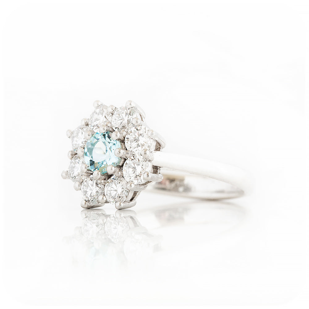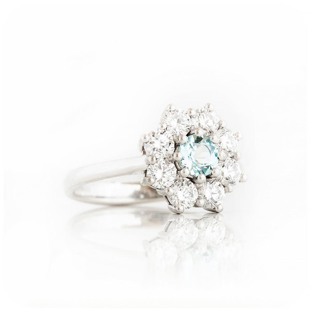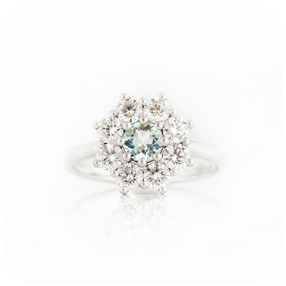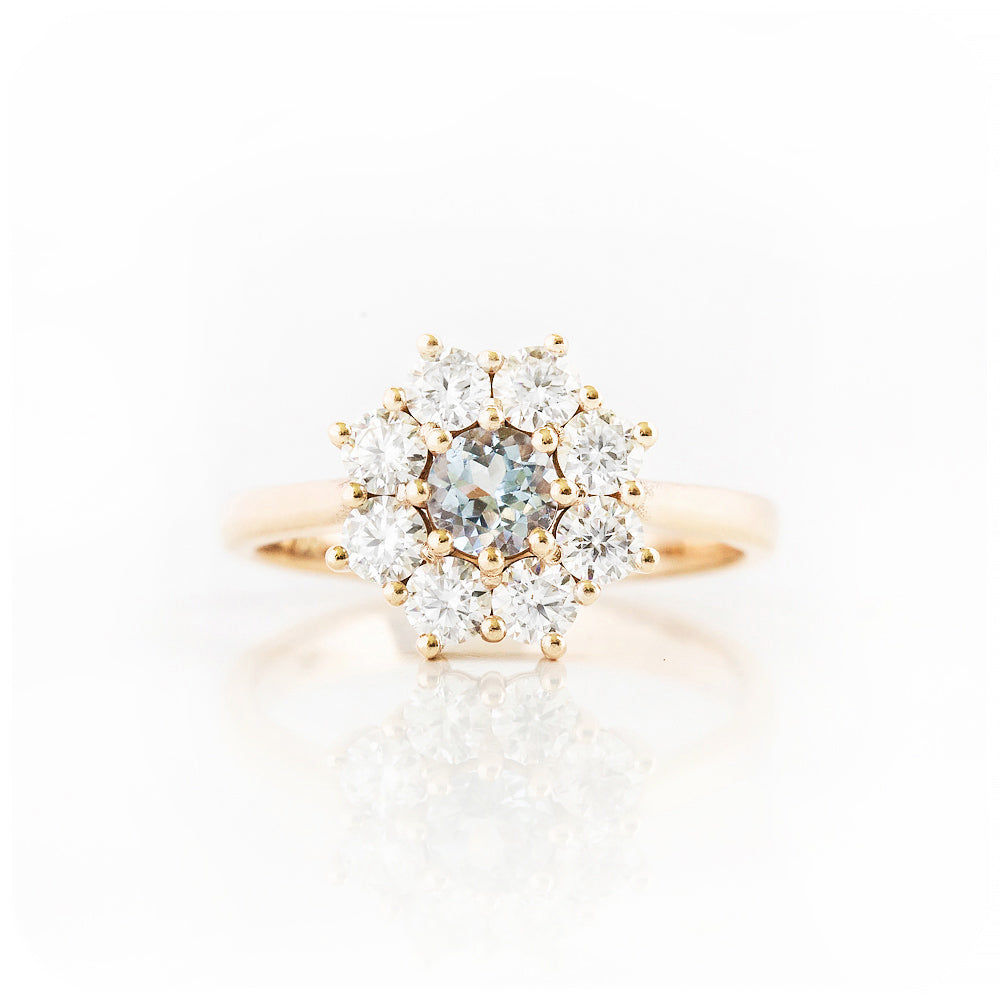 Fleur, a Moissanite and Topaz Flower Cluster Ring