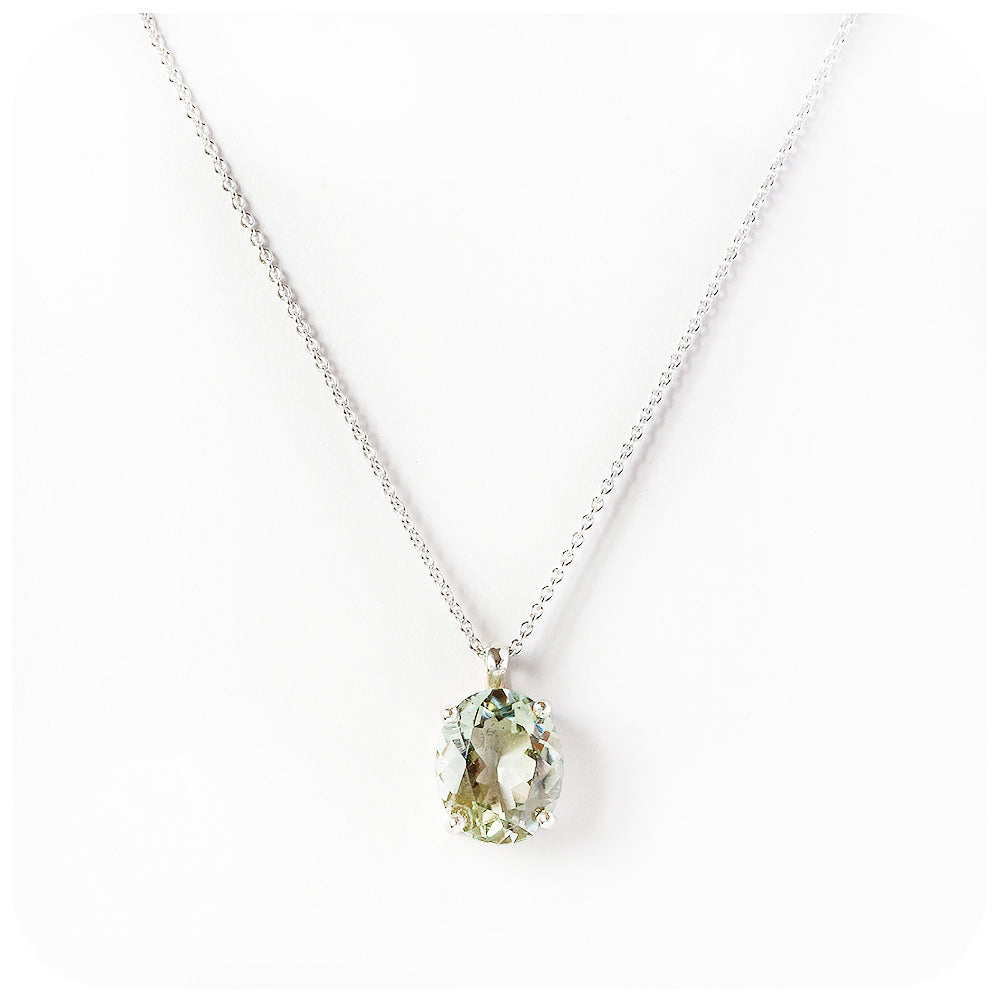 Lana, an Oval cut Prasiolite Pendant and Chain