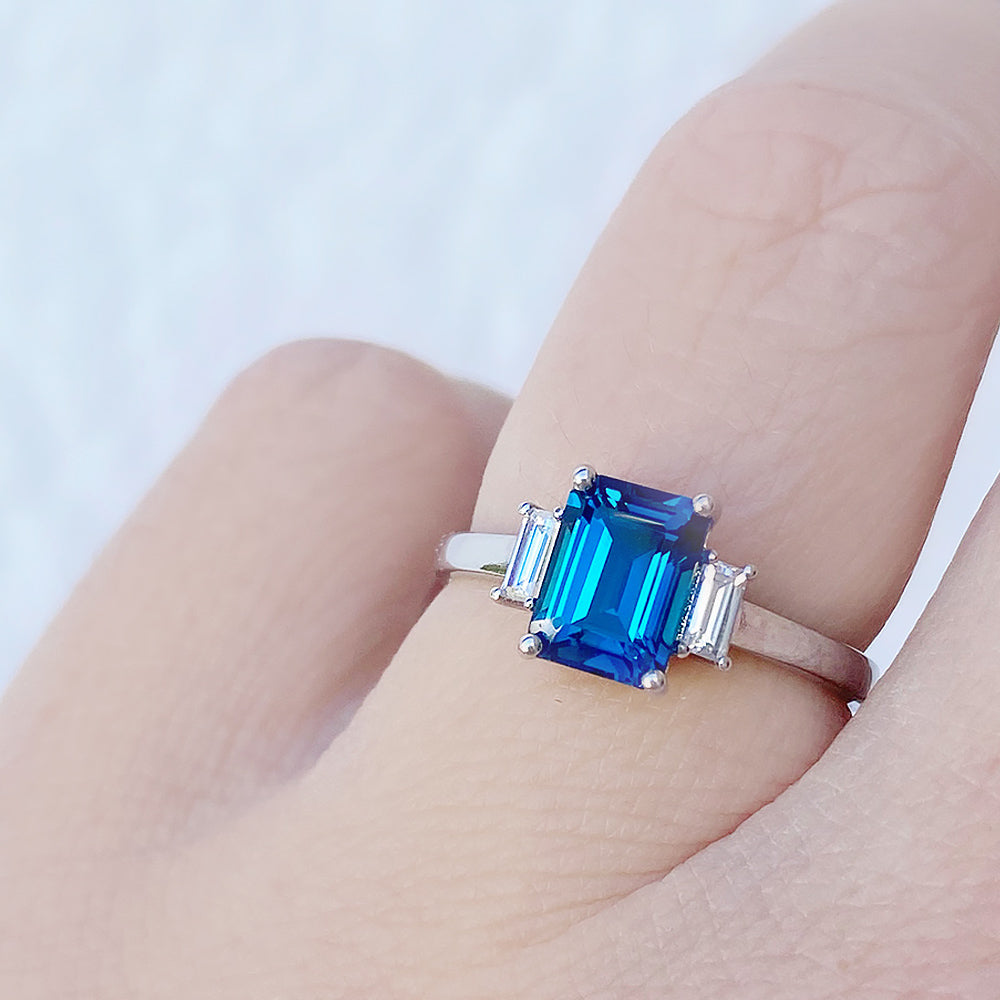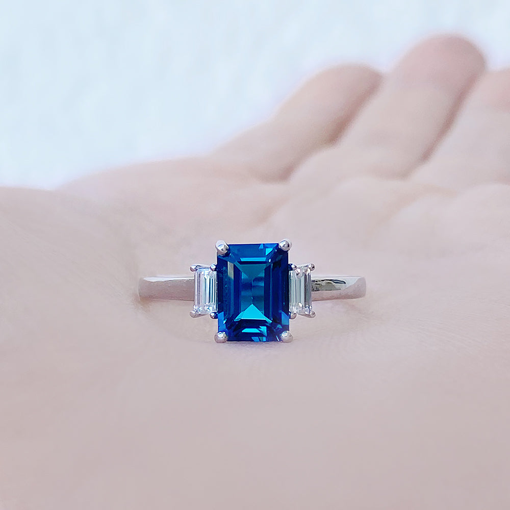 Lisa, London Blue Topaz and Lab Diamond Ring