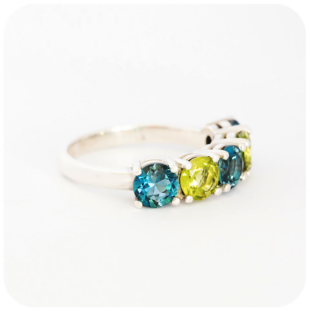 London Blue Topaz and Peridot Half Eternity Ring in Sterling Silver - 5.5mm